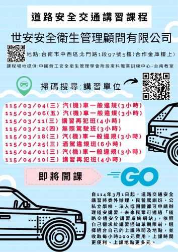 台南勞動法令與職場風險管理課程 - 世華安全衛生顧問管理有限公司