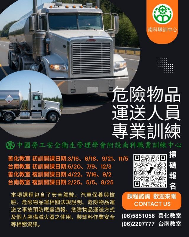 危險物品運送人員專業訓練(初訓)(16小時/20小時) 115/5/20【日間】